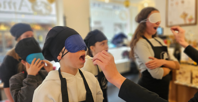 Yeux bandés, il faut deviner le parfum dégusté. Vanille ? Facile ! Mais certains goûts sont bien plus subtils… Fou rire garanti et compétition bon enfant jusqu’au bout.