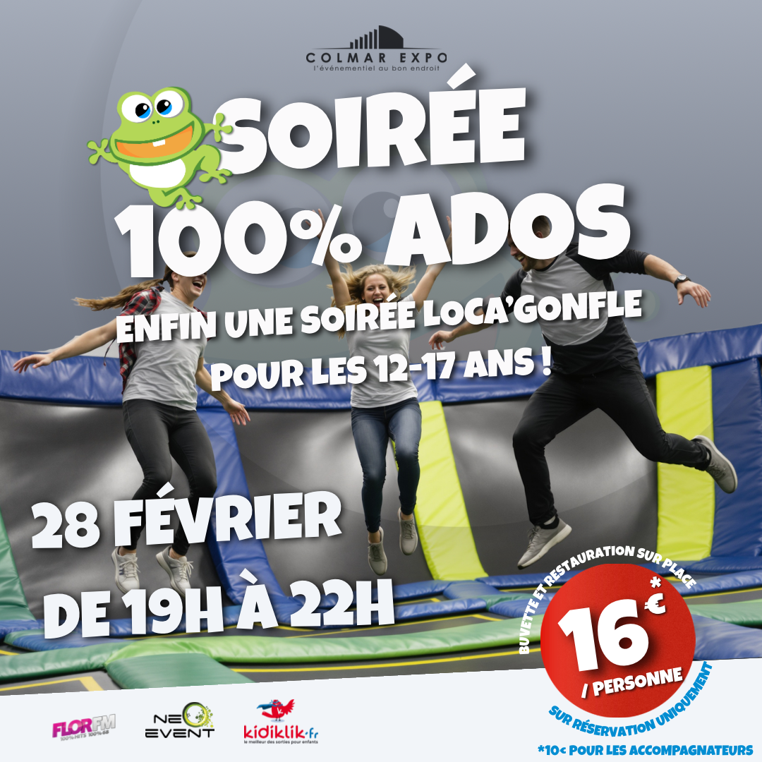 - SOIRÉE SPÉCIALE ADO 16 € le 28 février sur réservation les places sont limitées